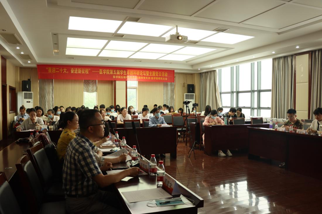 6月12日下午,医学院生理学与药理学学系教师党支部与院研究生会联合举办“喜迎二十大,奋进新征程”--医学院第五届学生卓越科研论坛暨主题党日活动。活动采取线上直播+线下报告相结合方式开展,活动人数达到二百余人。