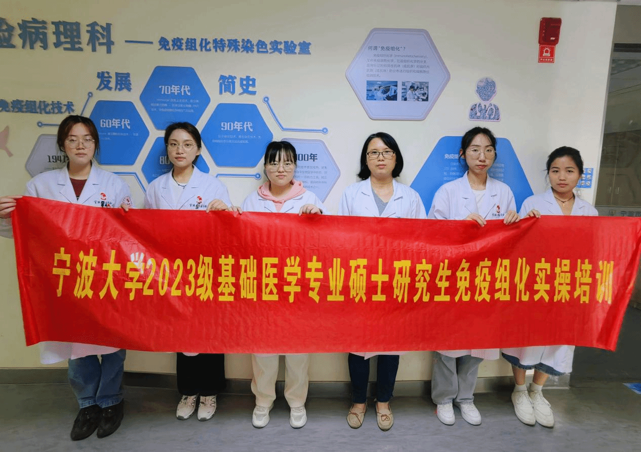 To strengthen the practical ability training of graduate students, the School of Basic Medical Sciences at Ningbo University Health Science Center recently organized a one-week immunohistochemistry (IHC) hands-on training session for 19 master's students from the 2023 cohort majoring in basic medical science. They visited the Ningbo Clinical Pathology Diagnostic Center for this training opportunity.