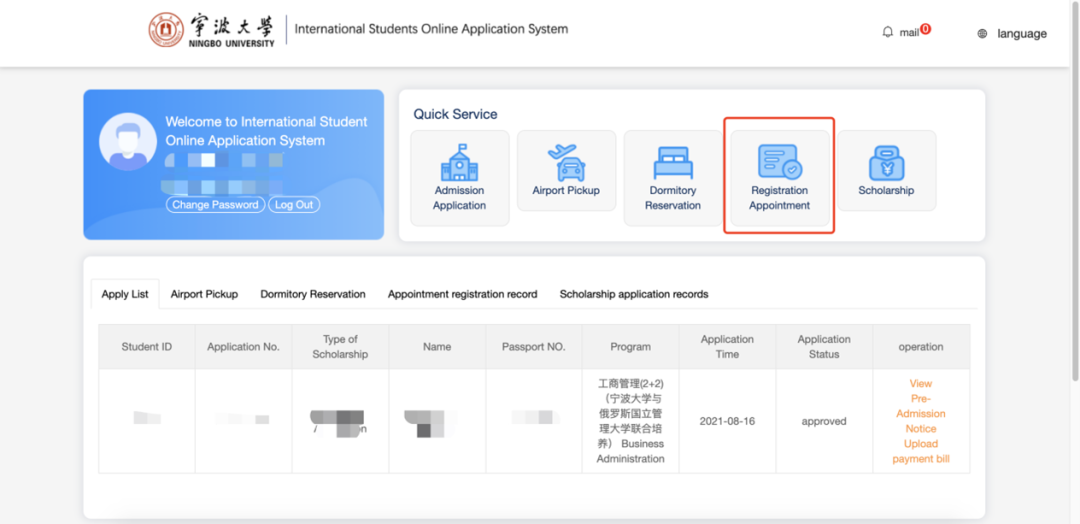 密码:护照号码后六位(初始密码)