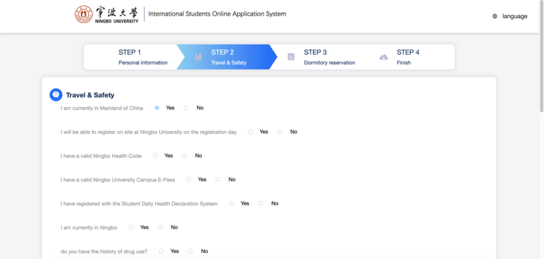 Complete the Travel & Safety section