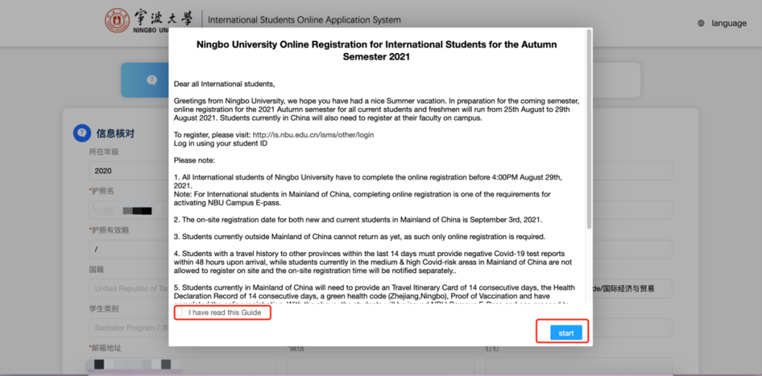 Read the Online Registration instructions, and tick to select "I have read this guide"