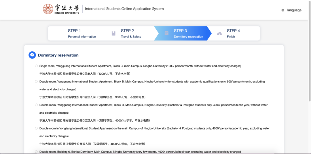 宿舍预定,并点击下一步