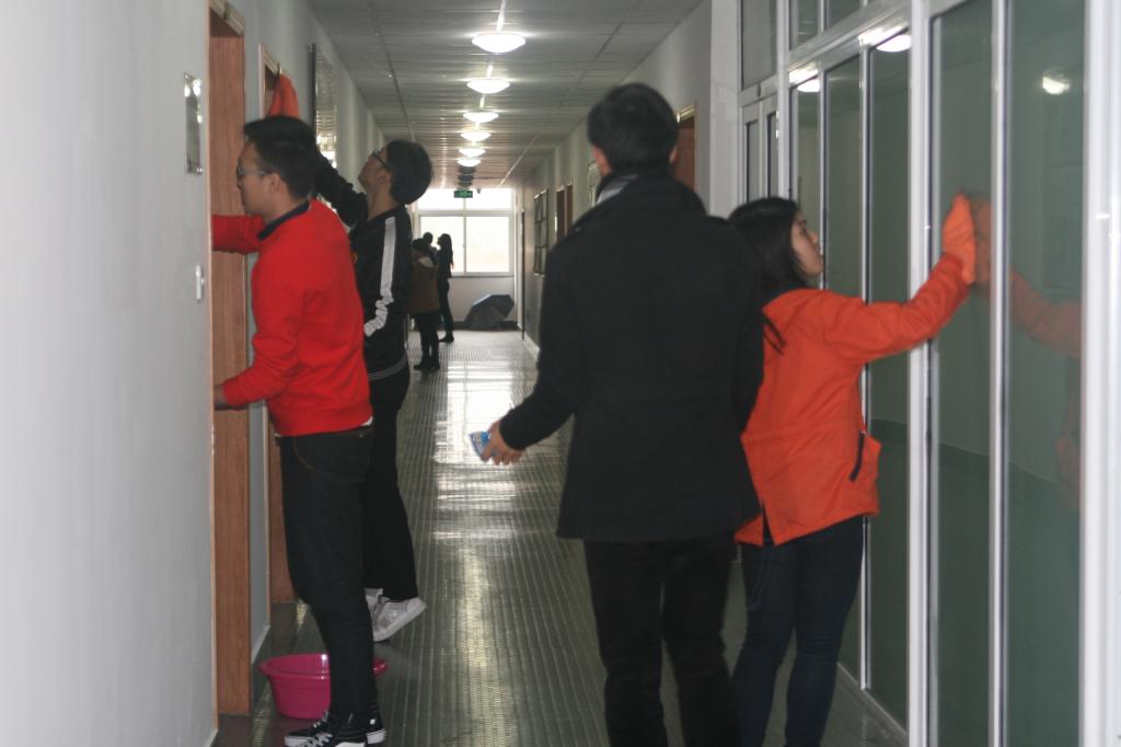 11月21日上午,医学院党委副书记于瑾滔老师和学工办辅导员带领医学院党员义工团开展了“迎接认证,洁净校园”大扫除行动,对至真楼、至真小楼、王长来楼进行了清洁整理。