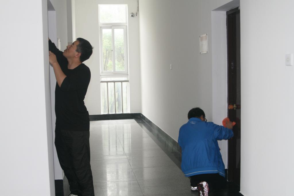 医学院学生党员义工”标志,拿着抹布、脸盆到三幢楼进行打扫。党员义工们发挥不怕苦、不怕累、不怕脏的精神,彻底打扫卫生死角。为了铲除难以清除的油漆和海报痕迹,义工们发挥聪明才智,自制木铲子,有的还用起了钥匙。此活动历时近三小时,墙面整洁了、窗户明亮了、栏杆干净了、地面亮堂了,义工们流下了汗水、洁净了校园,充分了发挥党员义工的先锋模范作用。