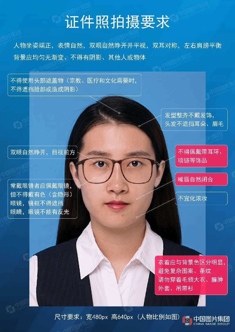 3、眼镜:不得戴(含隐形眼镜、美瞳)眼镜,镜框不得遮挡眼晴,镜片不能有反光,有反光的需要把眼镜摘掉。无论男生女生,五官必须全部漏出来。